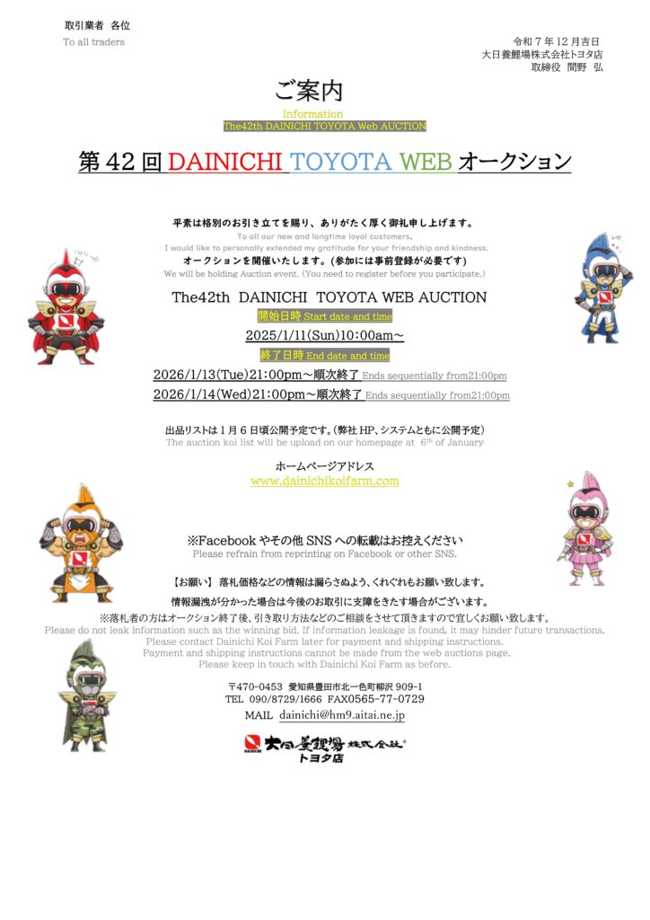 【1/11〜11/14開催】第42回 大日トヨタWEB オークション