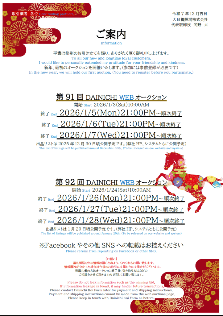 第91回WEBオークションを1/5~1/7に開催いたします。