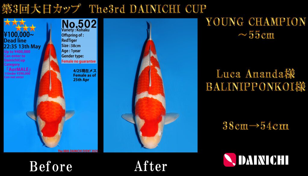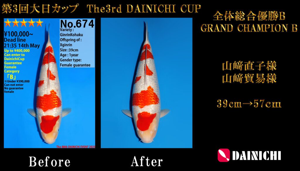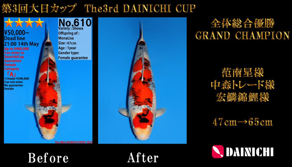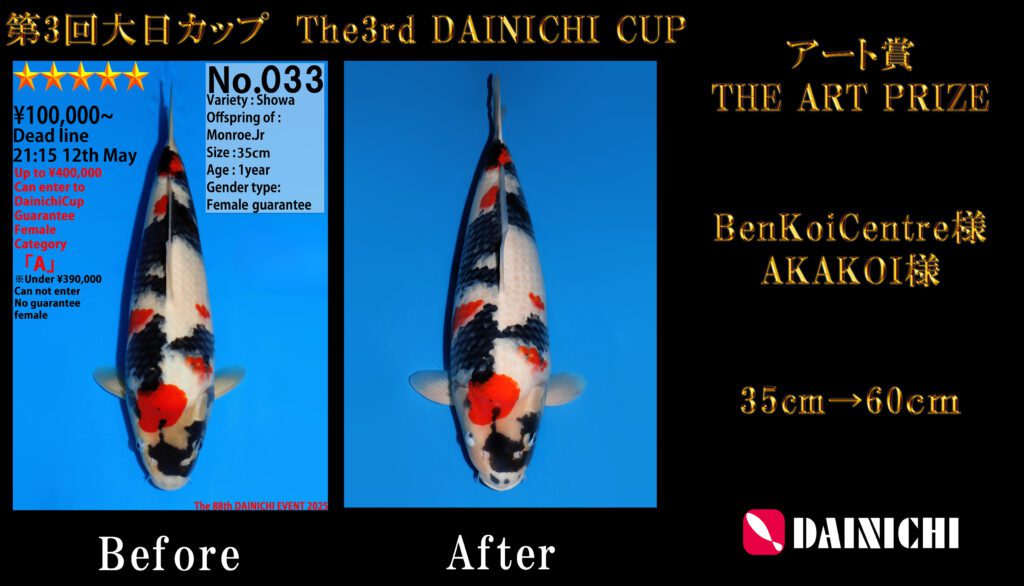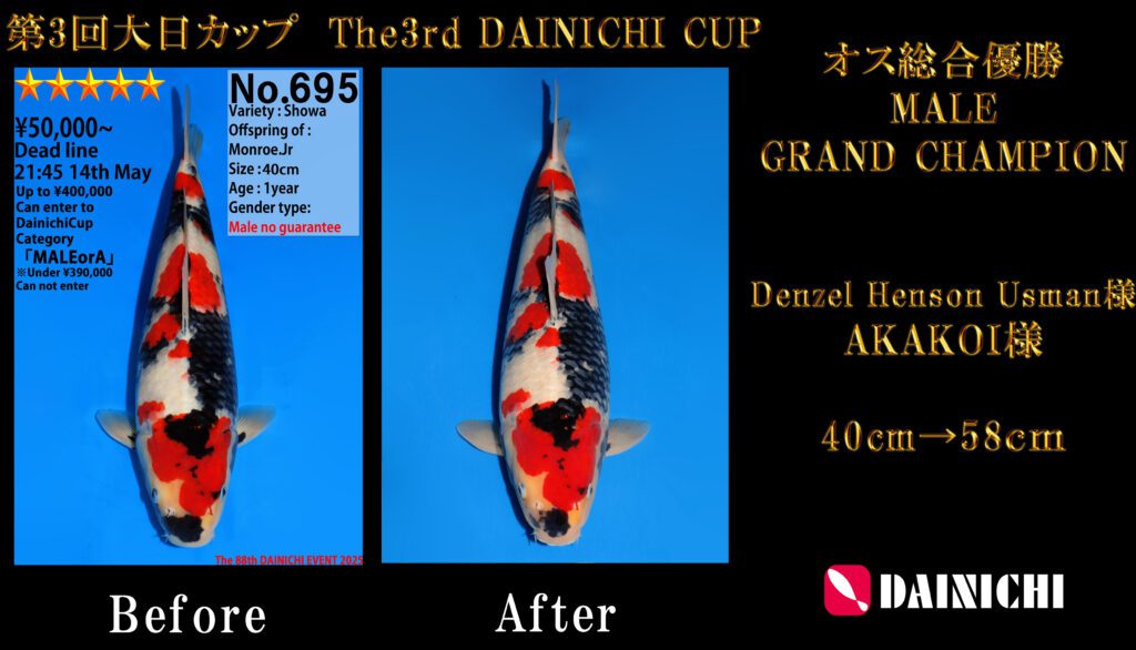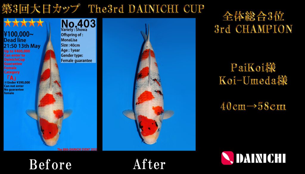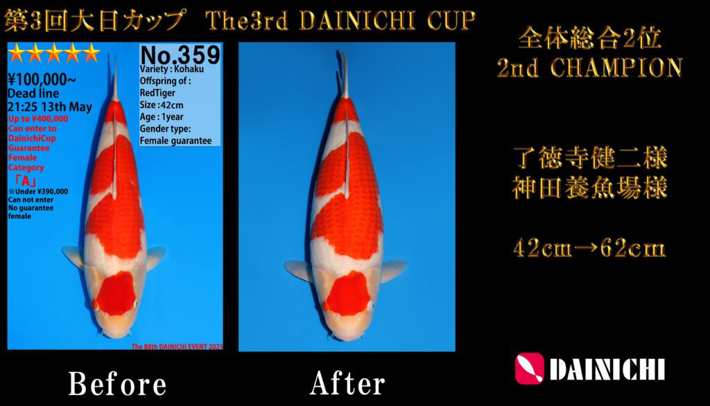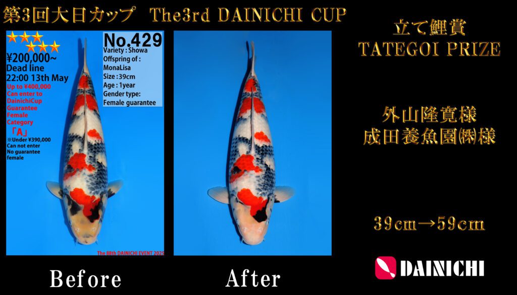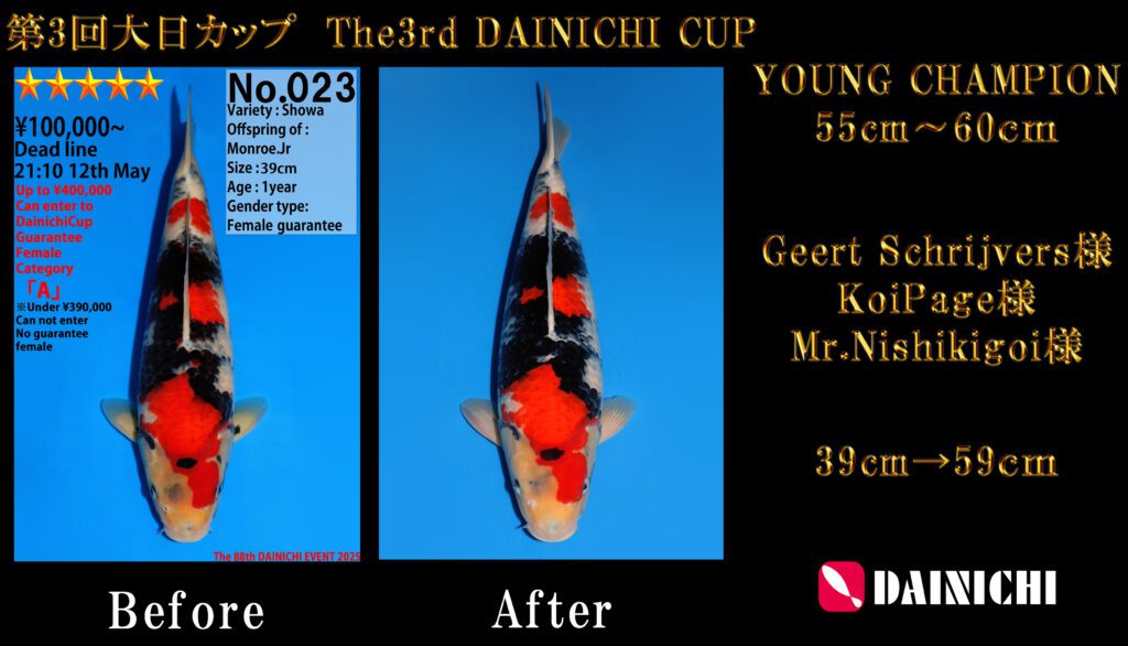 第88回大日オークションでご購入いただいた鯉から10本の入賞が決定しました。